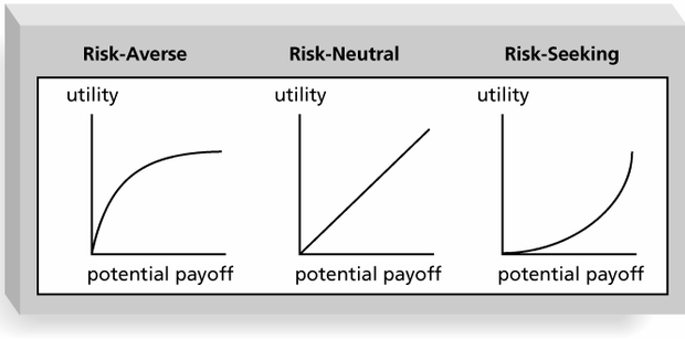 11.2 Tipos de riesgo11.2.1 Riesgo negativoEl diccionario define el riesgo como "la posibilidad de pérdida o perjuicio.” El riesgo negativo involucra entender problemas potenciales que pueden ocurrir en el proyecto e impedir el éxito del mismo. La administración del riesgo negativo es una forma de seguro, es una inversión. 11.2.2 Riesgo positivoSon riesgos que resultan en buenas cosas, a veces se llaman oportunidades. Un definición más general de riesgo del proyecto es una incertidumbre que puede tener efectos positivos o negativos para alcanzar los objetivos del proyecto. La meta de la administración del riesgo es minimizar los riesgos potenciales y maximizar los positivos. 11.2.3 Utilidad del riesgoRisk utility o risk tolerance es la cantidad de satisfacción recibida por un cierto pago. Gente renuente al riesgo (averse) suele no invertir mucho y esperar poco a poco un cierto nivel aceptable de utilidad. Aquellos aventurados (seeking) suelen invertir mucho sabiendo que la utilidad poco a poco irá aumentando de manera considerable. Los neutrales buscan un balance entre inversión y utilidad.
