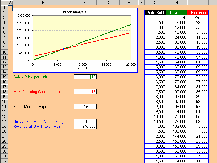 Sample Sensitivity Analysis for Determining Break-Even Point