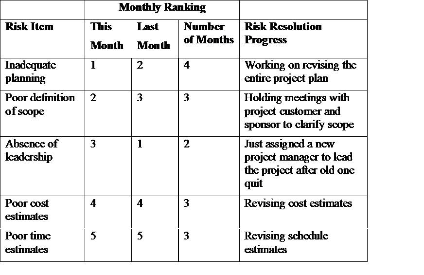 Example of Top Ten Risk Item Tracking